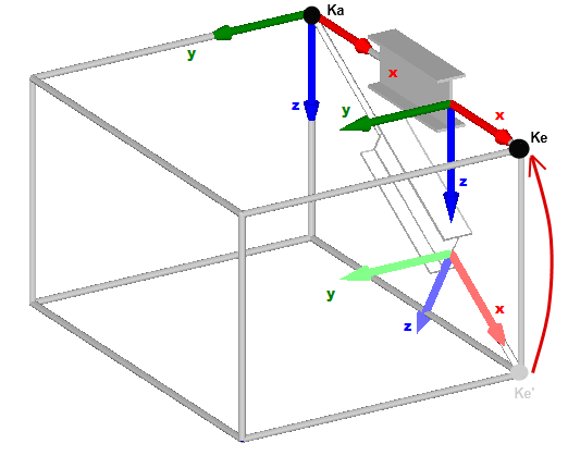 Während für alle Knoten das globale Koordinatensystem zuständig ist, hat jeder einzelne Stab sein eigenes lokales Koordinatensystem. Dieses ist zunächst durch die Lage des Stabs im Raum eindeutig festgelegt. Optional kann dieses automatisch entstandene Koordinatensystem durch Angabe eines Verdrehungswinkels eigenen Anforderungen angepasst werden.