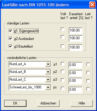 Hier bestimmen Sie den Dauerlastanteil des jeweiligen Lastfalles.