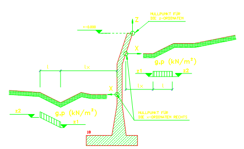 Diese Streckeneinwirkungen werden getrennt für die rechte und linke Seite definiert. XWIN setzt sie automatisch an der jeweiligen Geländeoberkante an.