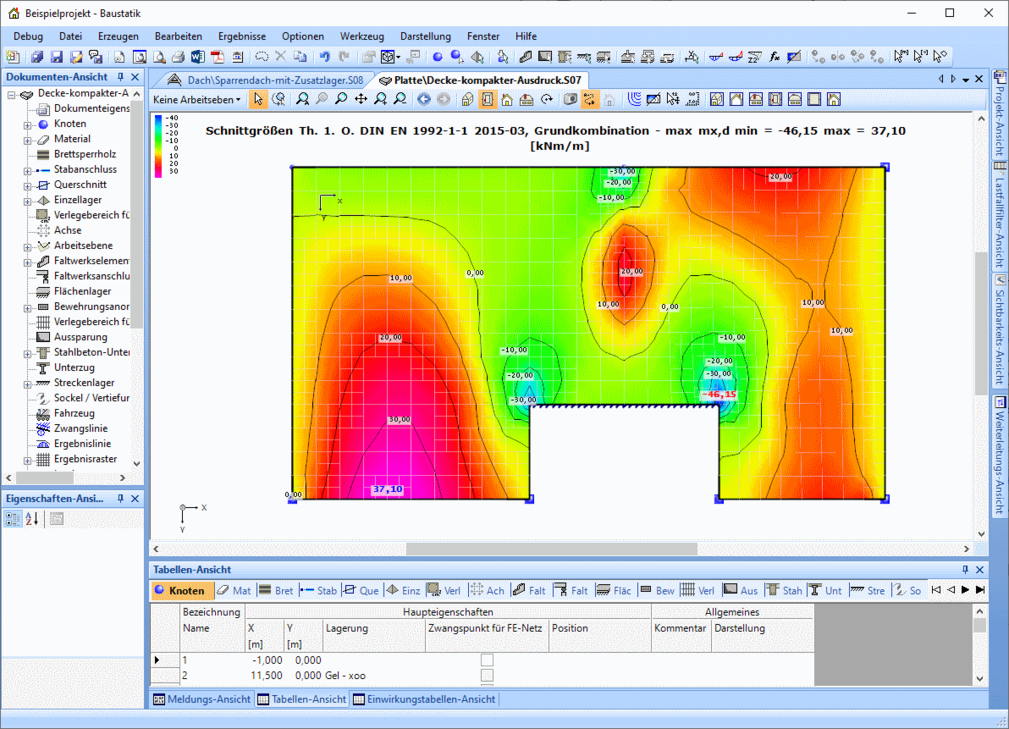 Die Baustatik kennt eine Vielzahl von möglichen Arten der Ergebnisdarstellung. Alle dafür zur Verfügung stehenden Optionen sind in einem recht umfangreichen Dialogfenster zusammengefasst. Es gibt aber auch eine Möglichkeit, speziell für flächige Bauteile, ganz ohne dieses Fenster zwischen verschiedenen, oft genutzten Darstellungsarten umzuschalten. Dieses Viedoe zeigt wie das geht.