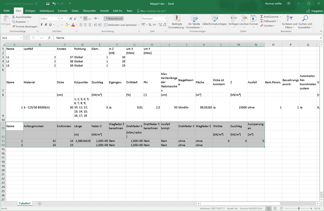 Demo für den Datenaustausch zwischen Baustatik und Excel