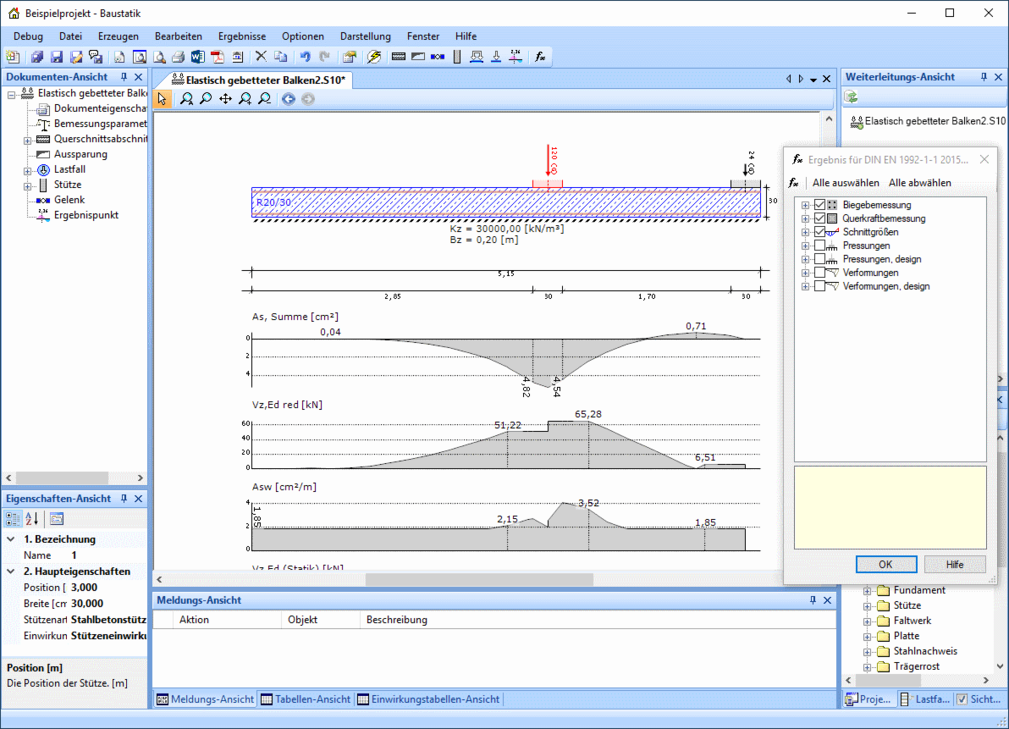 Ein kurzes Beispiel zur Eingabe eines elastisch gebetteten Balkens in der Baustatik. Das Beispiel verdeutlicht, wie sehr die Eingabe der des Durchlaufträgers gleicht.