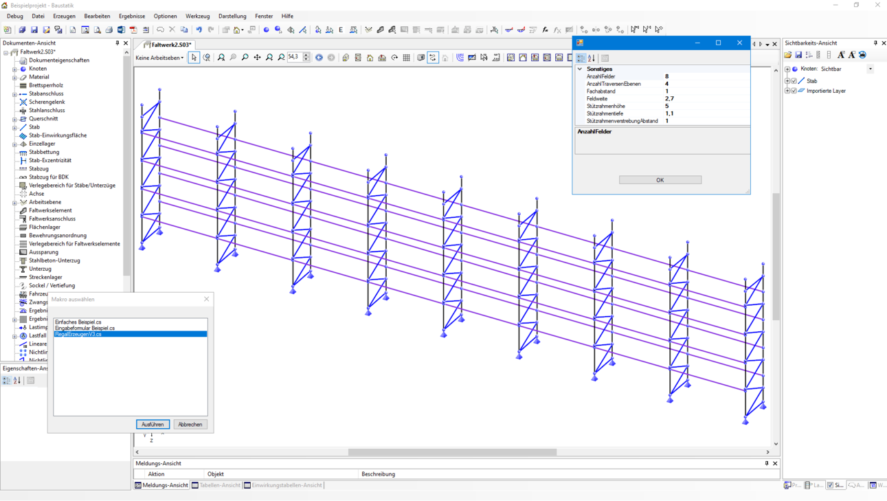 Die Baustatik ist vollständig programmierbar und Sie können eigenen Funktionen mit Makros erstellen. Speziell für immer wiederkehrende Aufgaben ist das natürlich praktisch. Einer unserer Kunden erstellt Statiken für Regale, die auf Basis eines Fertigteilsystems hergestellt werden - dazu verwendet er ein ähnliches Makro wie das, welches ich im Video kurz vorführe.