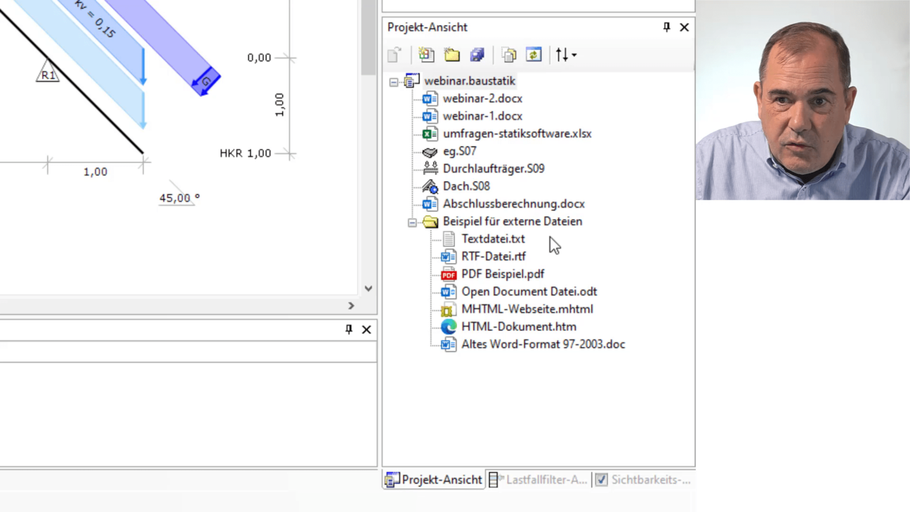 Das ist aber nicht alles, denn durch die Ausgabe nach Word erhalten Sie noch eine weitere sehr hilfreiche Funktion: Sie können dann auch Fremddateien mit in Ihrer Statik ausgeben. Und die können in verschiedenen Formaten vorliegen - zum Beispiel als Word oder PDF-Datei.