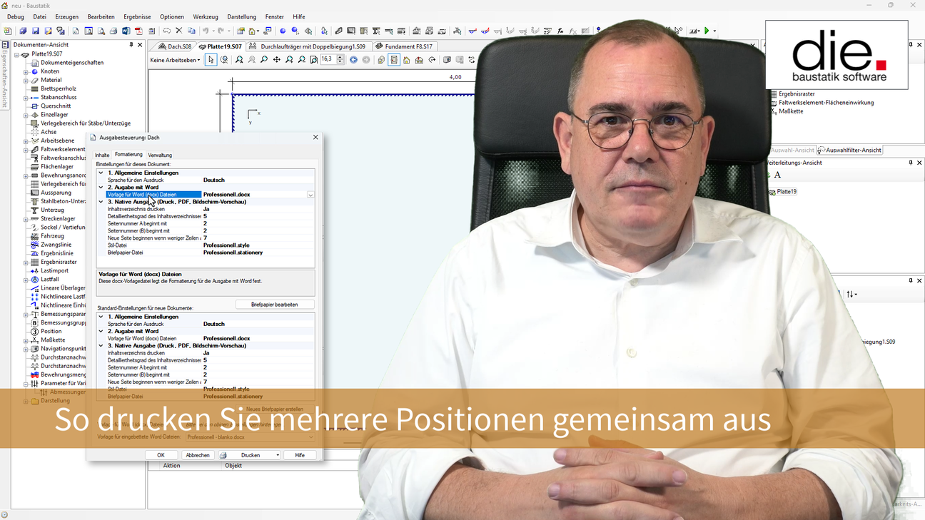 Baustatik Lernvideo: So drucken Sie mehrere Positionen gemeinsam aus