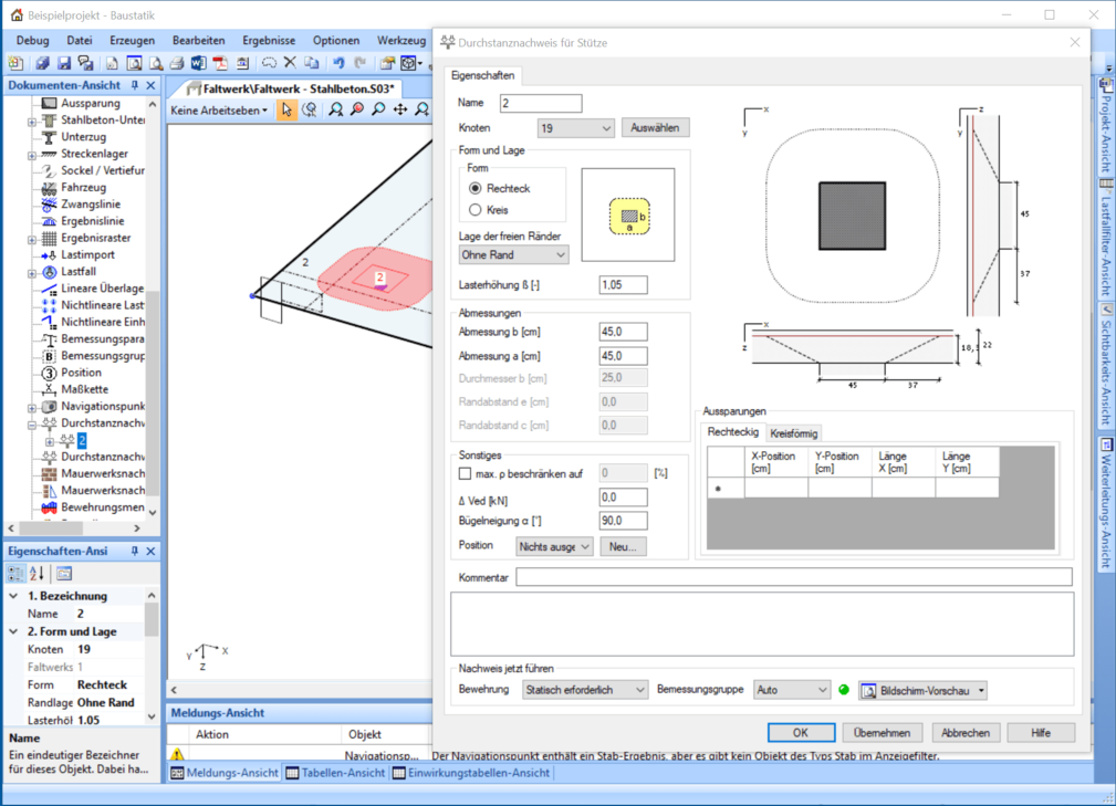 In der Baustatik können Sie in mehreren Fällen Durchstanznachweise führen. Dieses Video zeigt, wie Sie dabei vorgehen müssen.