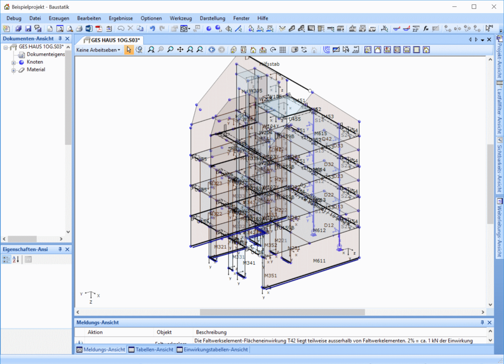 Mit den Anzeigefiltern der Baustatik kann man einzelne Elemente der Gesamtkonstruktion in einem eigenen Fenster darstellen und bearbeiten. Besonders bei räumlichen Konstruktionen wird die Arbeit dadurch deutlich übersichtlicher. Natürlich kann man von Fenstern mit Anzeigefiltern auch Navigationspunkte für den Ausdruck anlegen.
