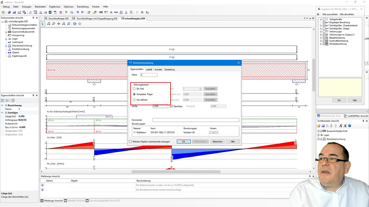 In diesem einstündigen Webinar erfahren Sie, wie Sie einen Durchlaufträger in der Baustatik ganz einfach definieren, verändern, berechnen und ausdrucken. Dabei wird der Träger zunächst mit der Schnelleingabe erfasst und dann manuell verändert.